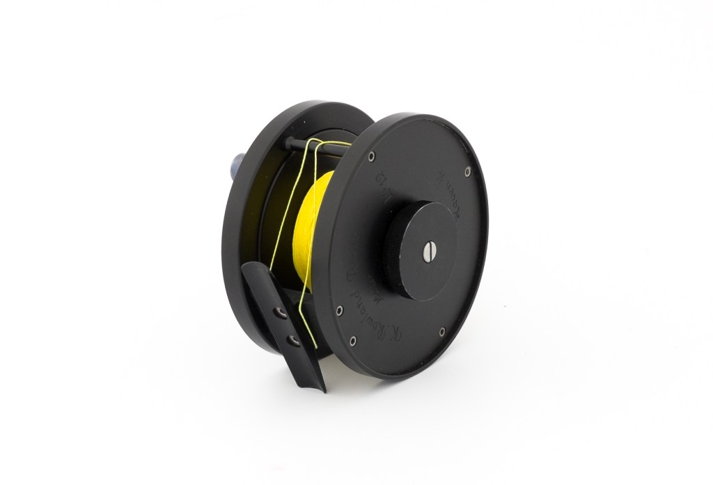 For sale here is a fine Raven reel by Kevin Rowland. Size 3/0 and set up for left hand wind. Comes with an original pouch.