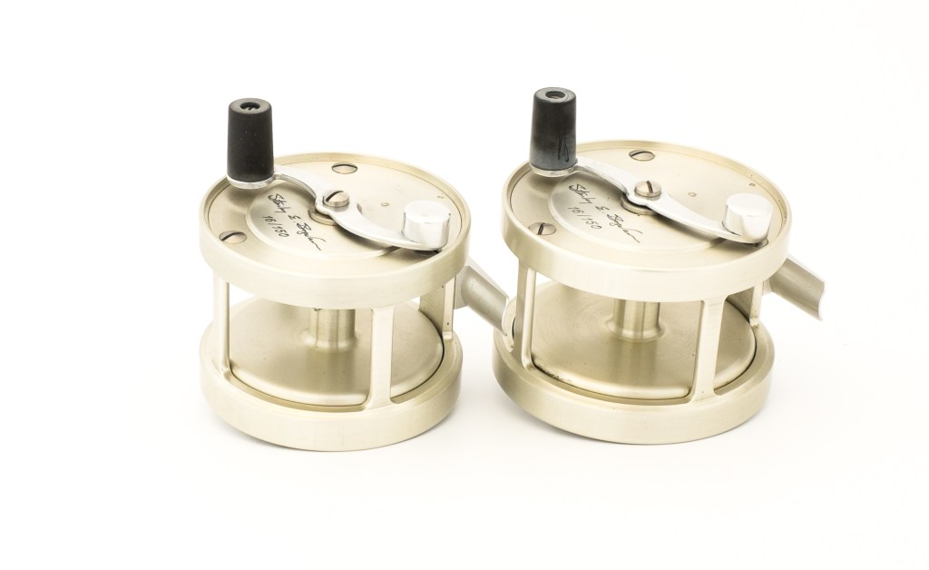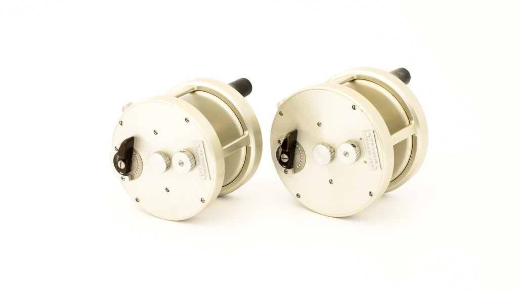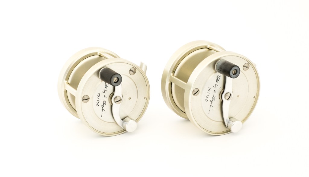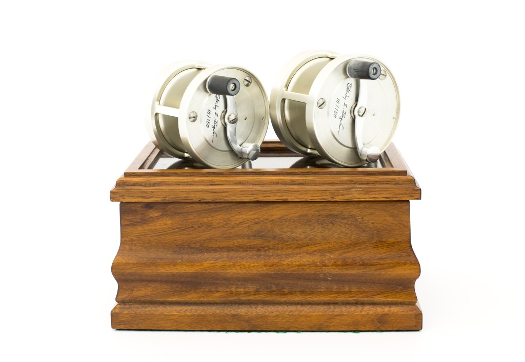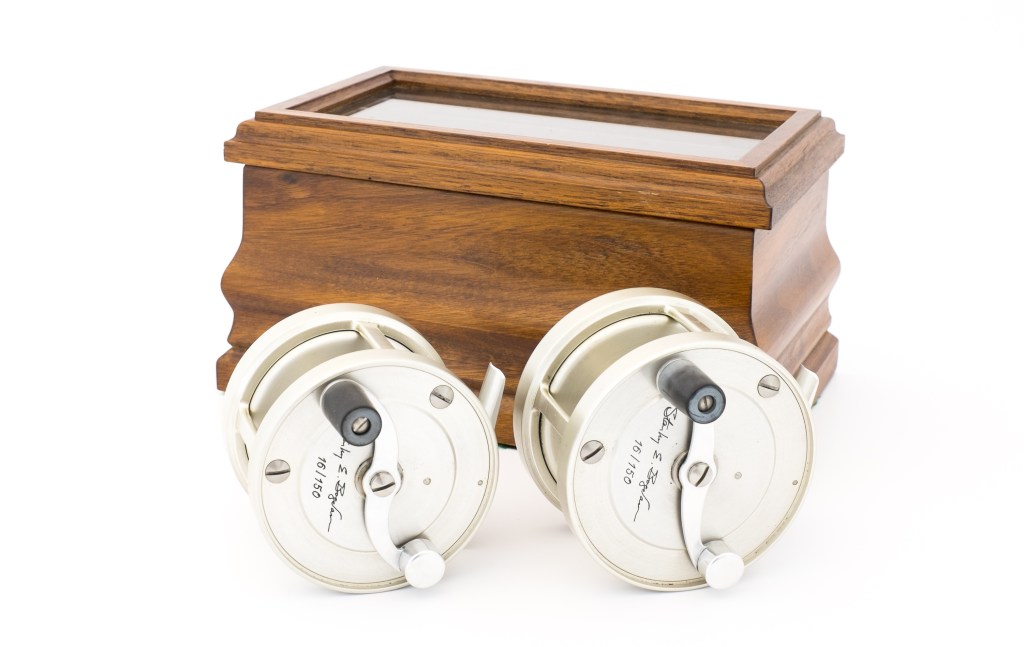 For sale here is a stunning Bogdan Anniversary Salmon Reel set in unused condition. The set contains models 0 and 150 in RHW. Set number 16/150.