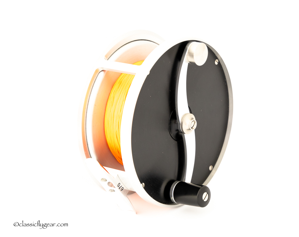 A fine light salmon reel by Otto Zwarg. Model 2-0 Saguenay. Comes with an original leather case.