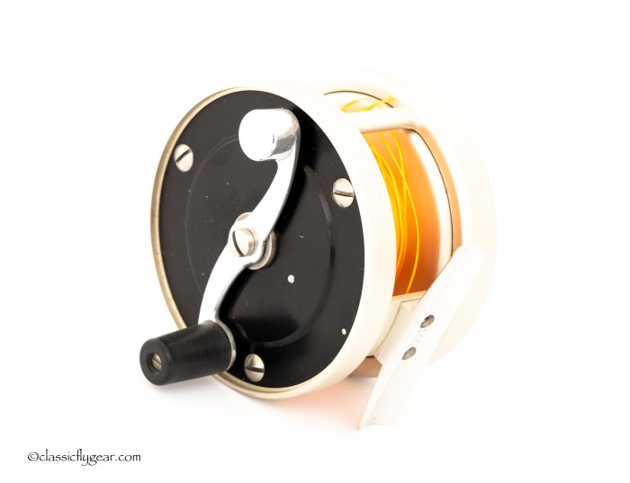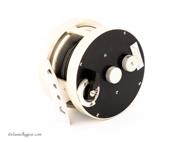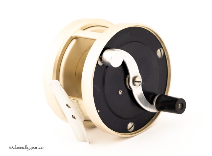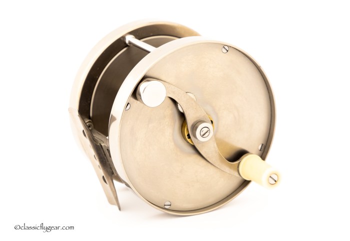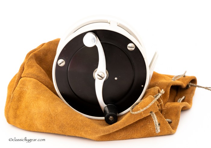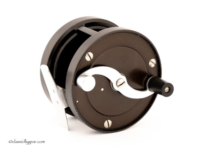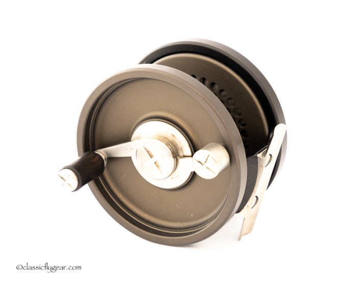 A fine light salmon reel by Otto Zwarg. Model 2-0 Saguenay. Comes with an original leather case.